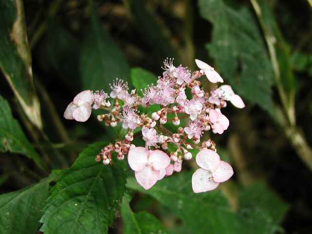 アジサイ類は木で葉は対生ですが、クサアジサイは草で葉は互生です。