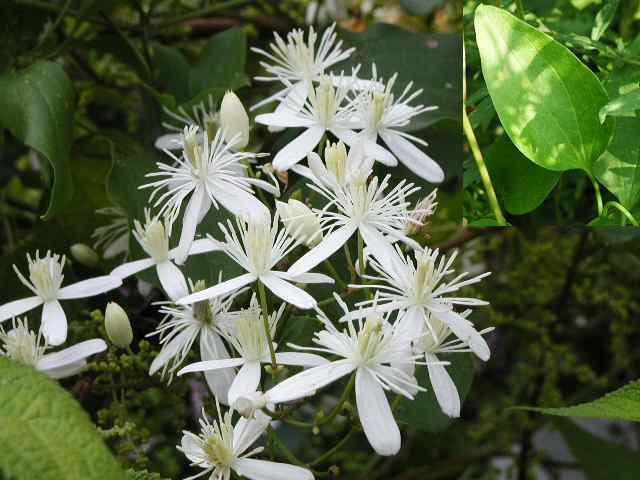 山地の林縁や道ばたの日当たりの良いところに生えています。花はボタンヅルより一回り大きいです。