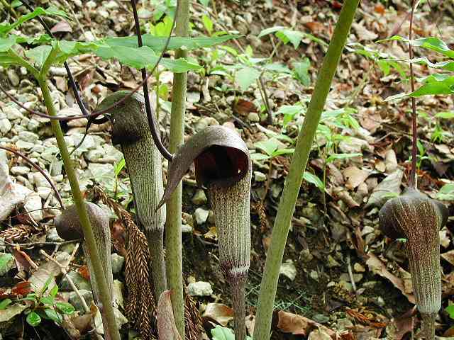 分類しにくいテンナンショウ属の中で、とても特徴のある形をしているので一目でわかります。